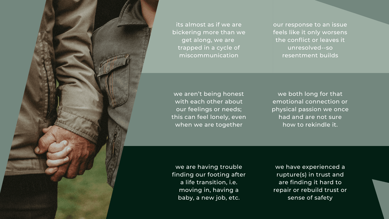 whatever it is that you and your partner are facing, it’s a valuable and vulnerable step to get support from a professional.